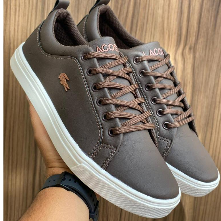 Tenis Masculino em Couro Legítimo Sola Bicolor com Ajuste de cadarço Promoção de Lançamento