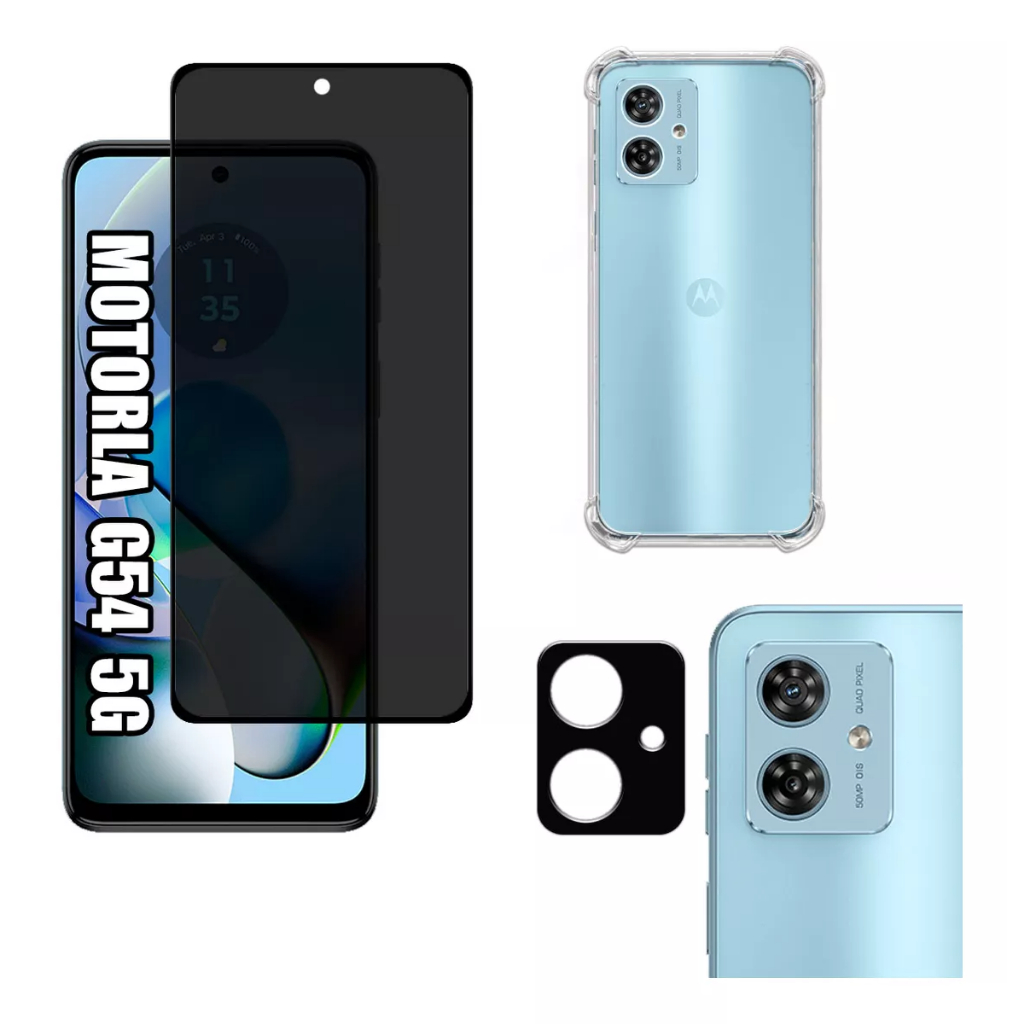 KIT Para Motorola Moto G54 6.5 | Película de Privacidade 3D - Capa Capinha Anti Impacto - Película da Câmera 3D