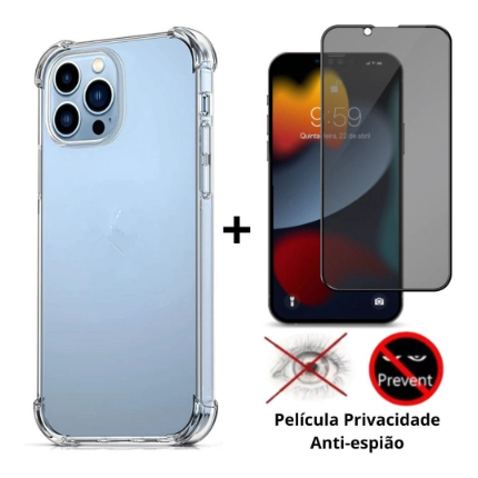Kit Película Privacidade 3D Temperado Anti Spy + Capa Capinha Transparente TPU Para Moto G04 G14 G24 G34 G54 G84