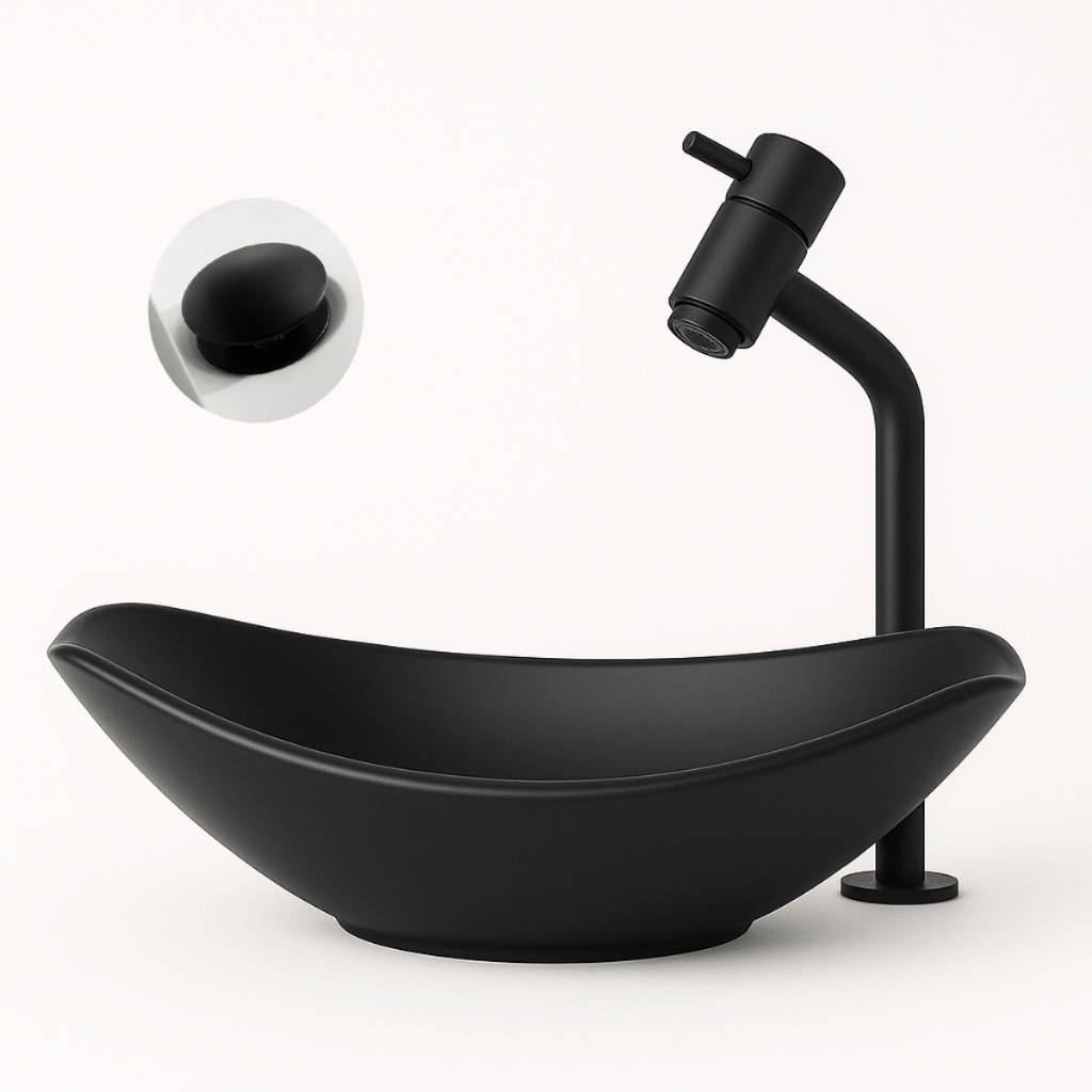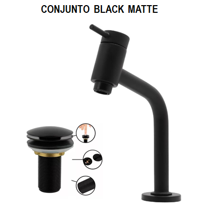Torneira Preta de Cuba Baixa Black Matte com Valvula Clic , Torneira para banheiro, lavatorio, cuba de sobrepor baixa