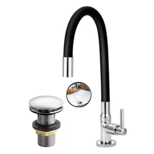 Torneira Flexivel preta de Banheiro com Valvula clic para lavatorio cubas de sobrepor