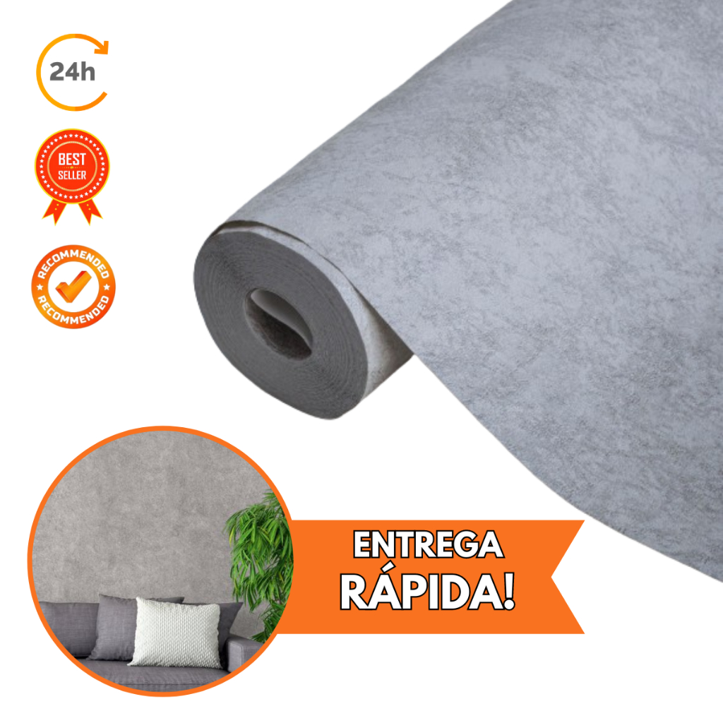 Rolo Papel De Parede Adesivo Cimento Queimado Cinza Claro