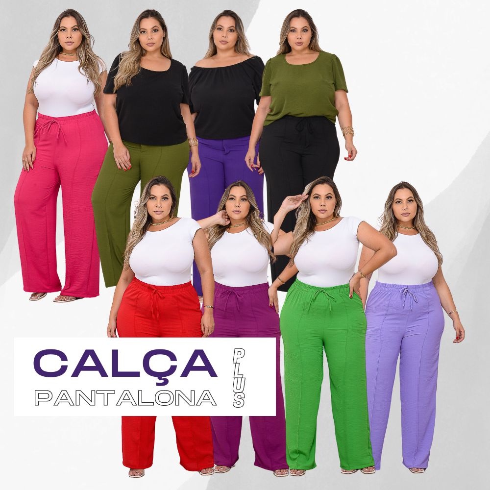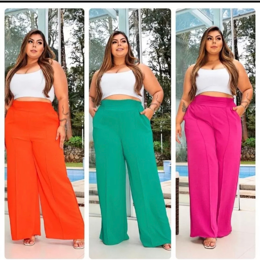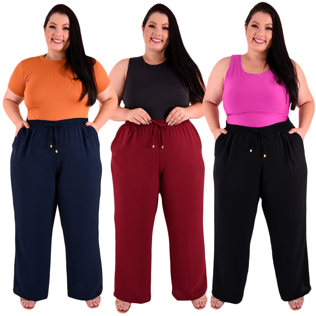 Calça Pantalona Plus Size Feminina Cintura Alta Moda blogueirinha