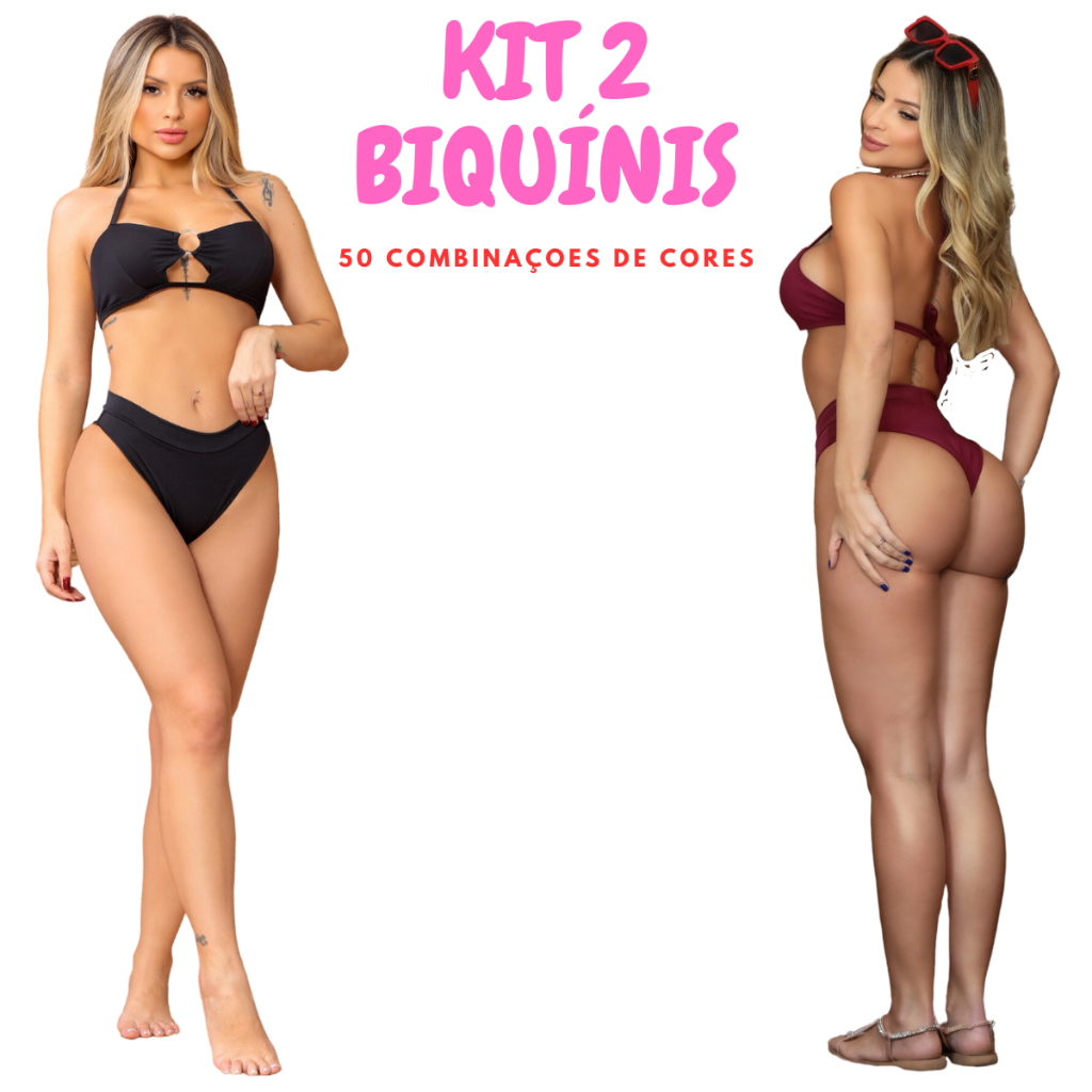 Kit 2 Biquini Feminino Hot Pants Suplex Biquíni Argola De Amarrar Biquine Cintura Alta Moda Praia