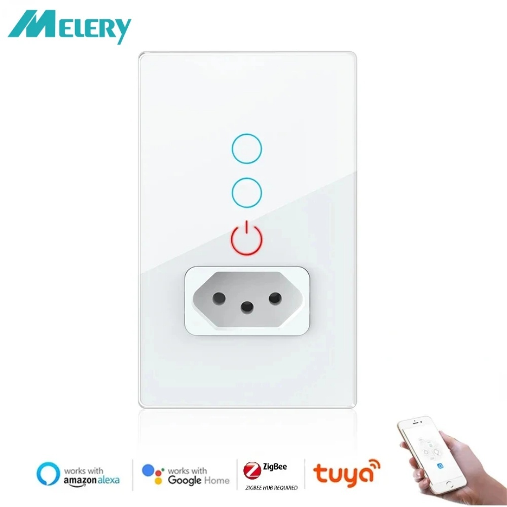 Melery Zigbee Tuya Smart Brasil De Luz Parede Tomada Painel Vidro Saída Brasileira Alexa Google Home