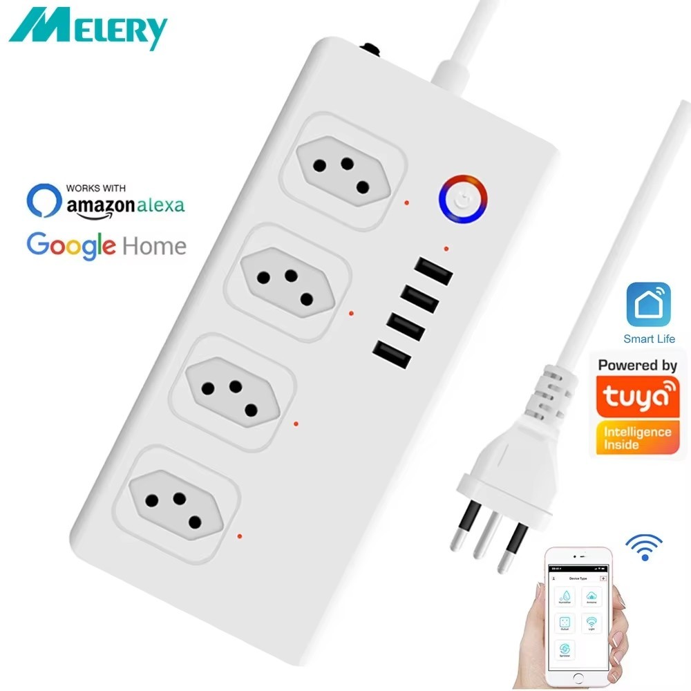 Melery WiFi Tira De Energia Inteligente 4 Vias AC Brasil Tomada USB 1.5m Cabo Extensão Sem Fio Remoto Alexa Tuya Google