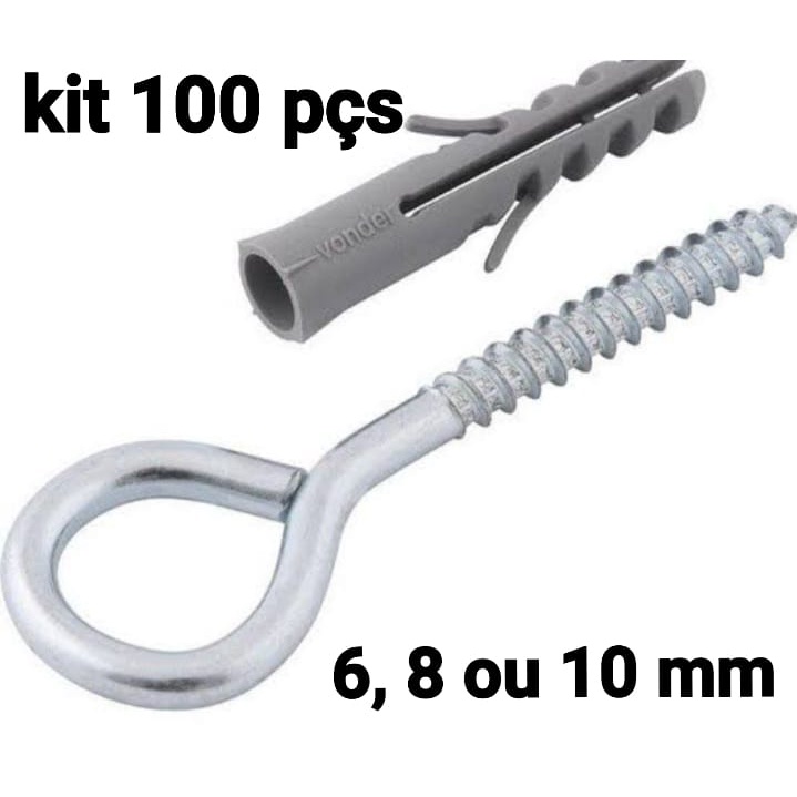 Pct 30 Parafuso Gancho Fechado Pitão Com Bucha 6mm P/ Varal Ancorar Gesso