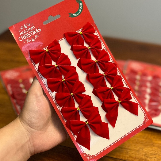 Kit Laços De Natal Com 12 Unidades Lacinho De Decoração Natalina Vermelho Enfeite De Árvore