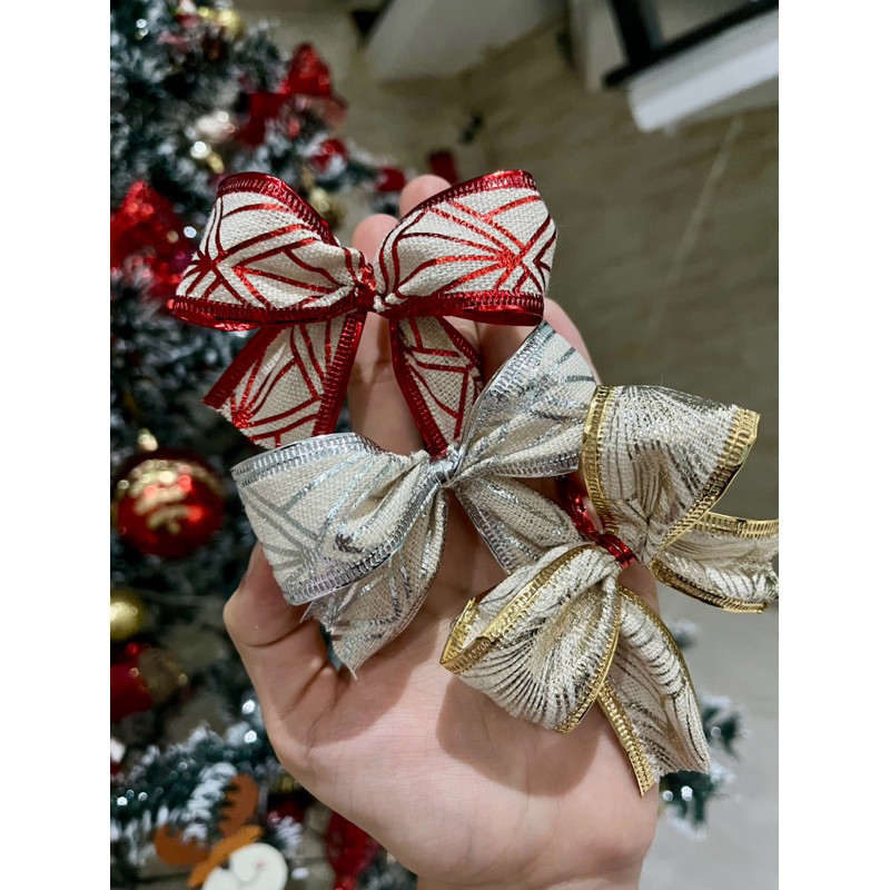 Kit 12/24/36 Laços De Natal Lacinho Enfeite para Árvore Natal Vermelho Dourado Prata