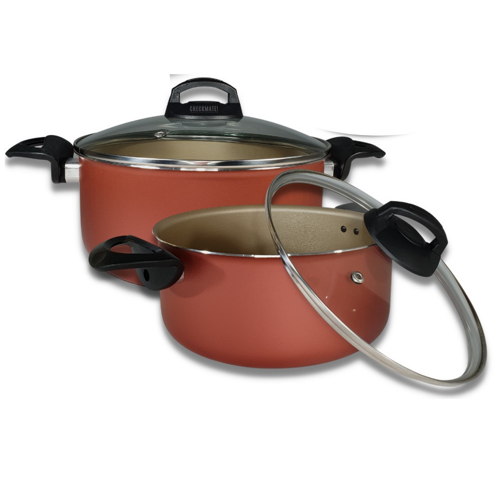 Kit 2 Panelas Caçarolas Tamanho Grande 02 Peças 22 E 24 Cm Cor Vermelha Preta Cereja Dourada Cobre Preta Rouge Com Tampa De Vidro Kit Panela Antiaderente Com 5 Camadas De Teflon