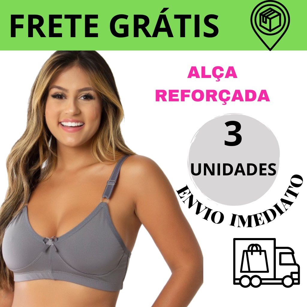 PROMOCAO Kit 3 Sutiã Sem Bojo De Sustentação Reforçado Alça Larga Plus Size