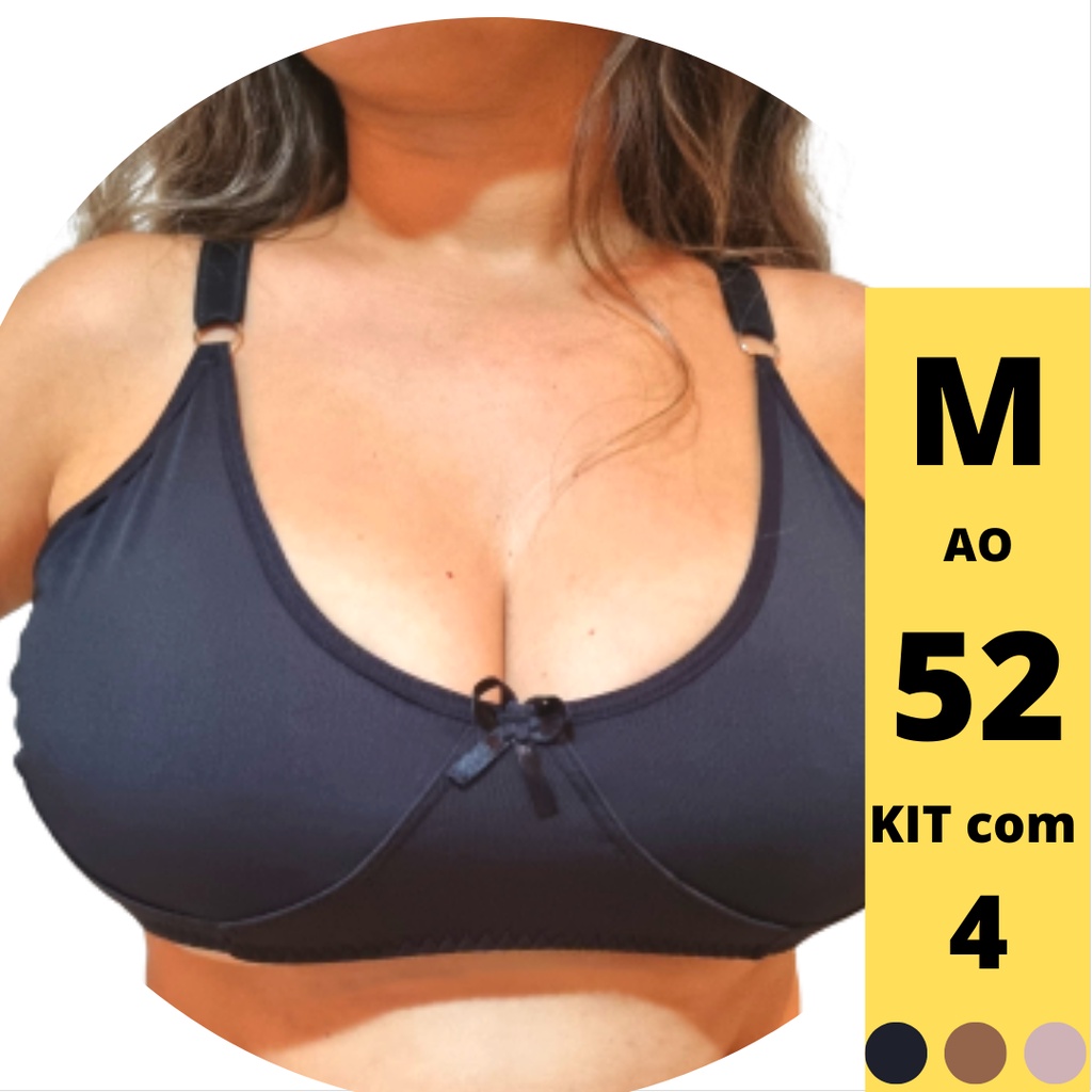 Kit 4 Sutiã Reforçado Sustentação PLUS Size e NORMAL Sem Bojo Básico Promoção