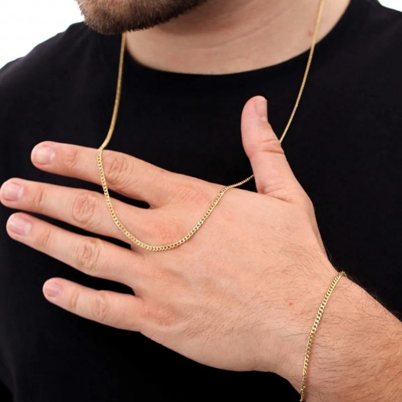 Kit Corrente Masculina + Pulseira Grumet 2mm Banhado A Ouro 18k
