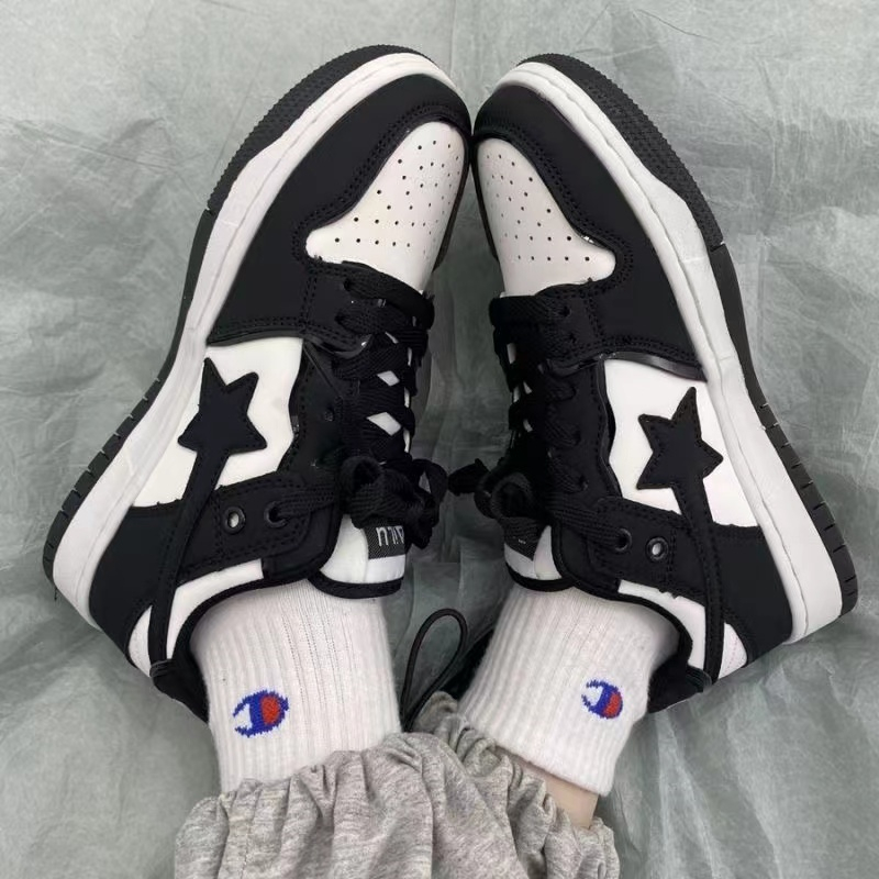 Star Sneakers Women's Sneakers Women' s Sneakers 2023 Primavera Outono Novo Estilo Sapatos Femininos Bape Sta Cinco pontas Star Ape Head Low-cut Round Toe Lace-up Retro Sapatilhas de sola grossa Casual All-match Tênis de corrida