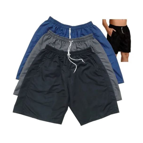 Kit 3 Short Tactel Masculino 1 Listra Bermuda 3 Bolsos Academia Esporte