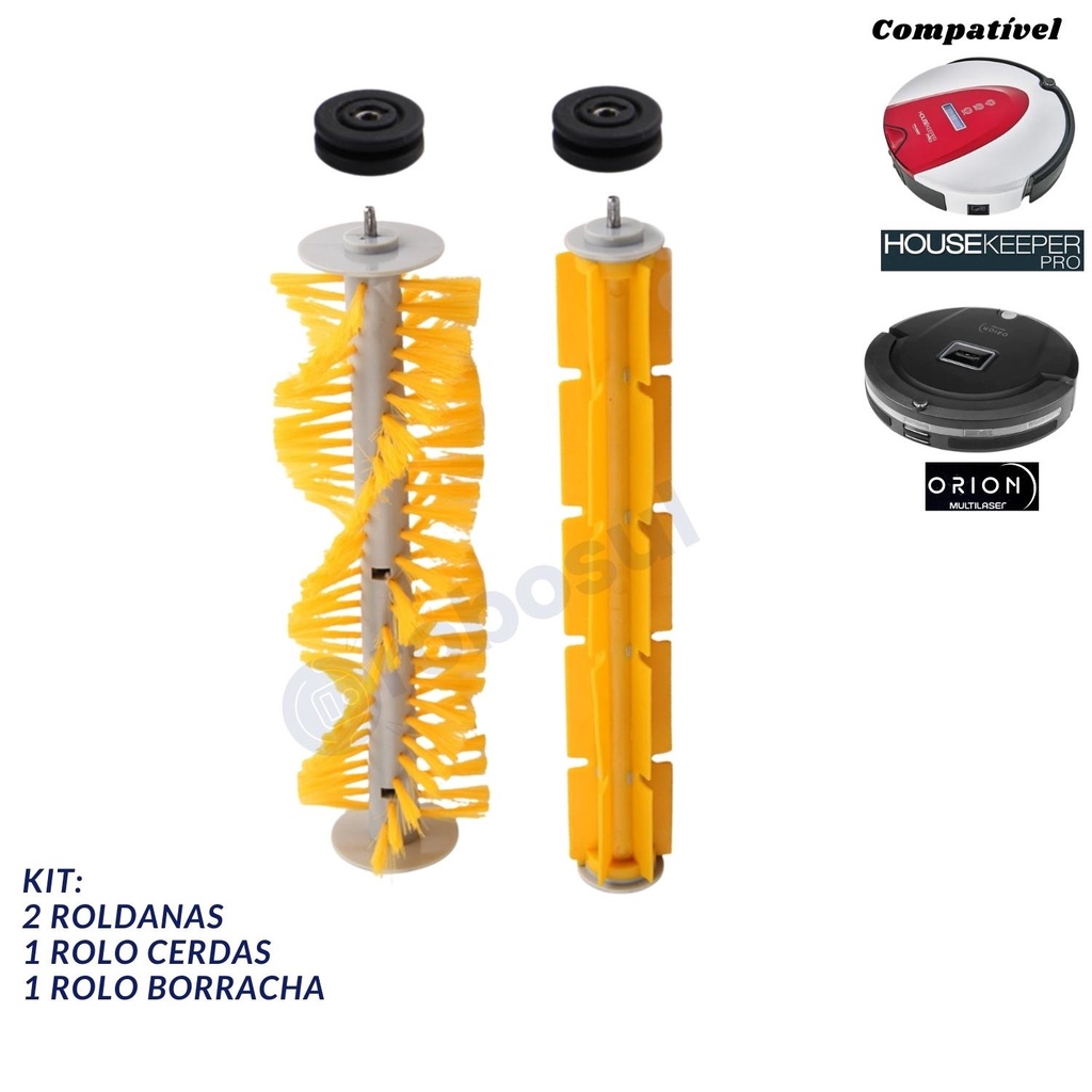 Escova de Cerdas e Borracha com Roldanas Para Robo Aspirador Housekeeper Pro e Multilaser Orion HO042