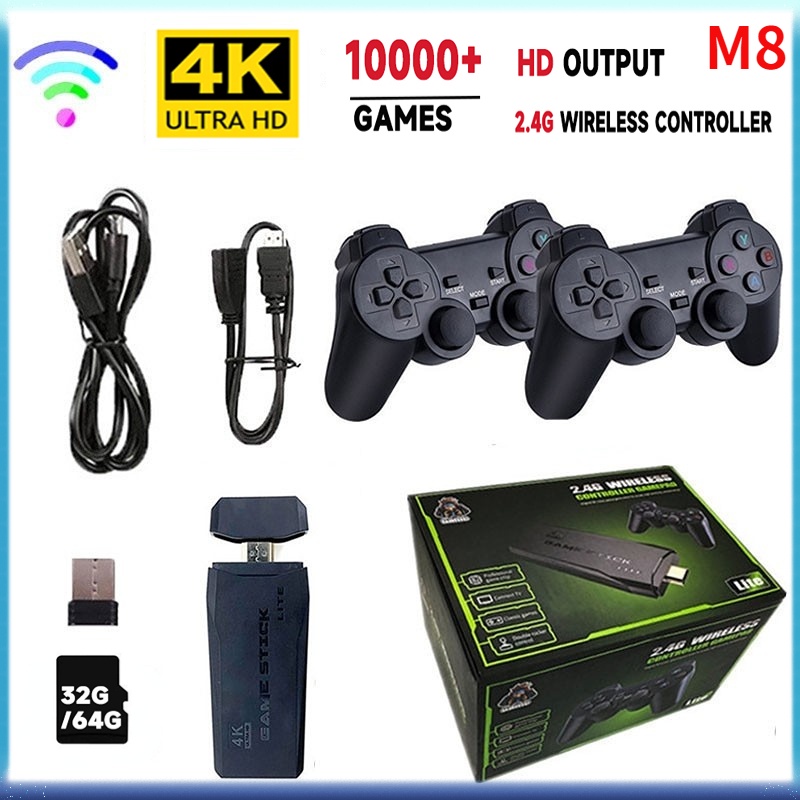 Video Game Stick M8 4K Controlador Sem Fio HDMI 2.4G Ps1/Cps/Fc/Gb/Gba Mais de 10000 Jogos