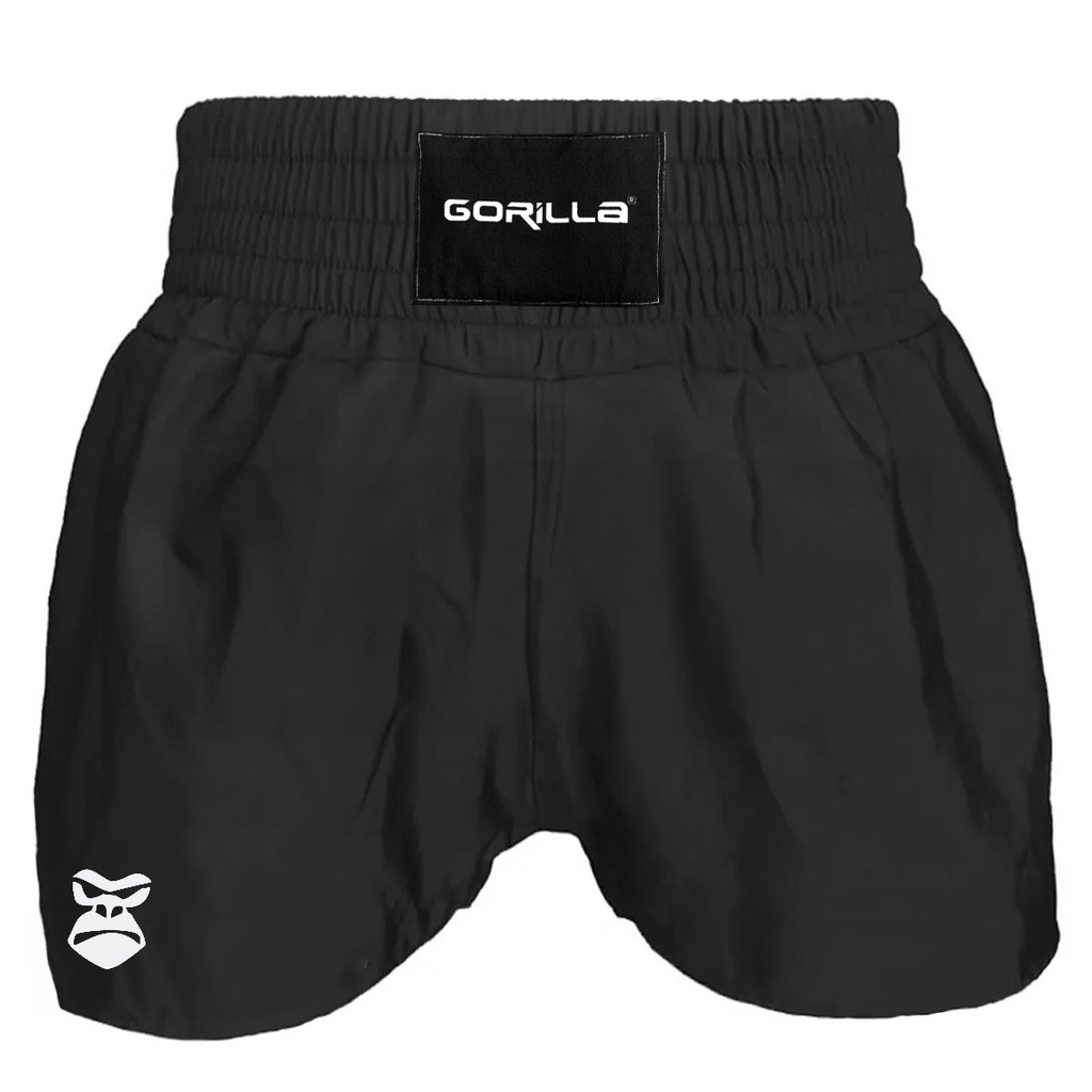 Shorts Muay Thai Masculino Preto Luta Treino Curto Competição Artes Marciais Bermuda Unissex Tactel Premium Elastano Cintura com Elastico Jiu Jitsu Boxe Conforto Flexibilidade Esporte Tecnologia Secagem Rápida Original Gorilla Presente Natal Amigo Secreto