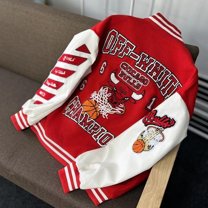 Jaqueta de Baseball Hip Hop Baseball Uniforme Junta BRANCA AC Milan Indústria Pesada Bordada OW Primavera Outono Touros Novo Estilo Trendy
