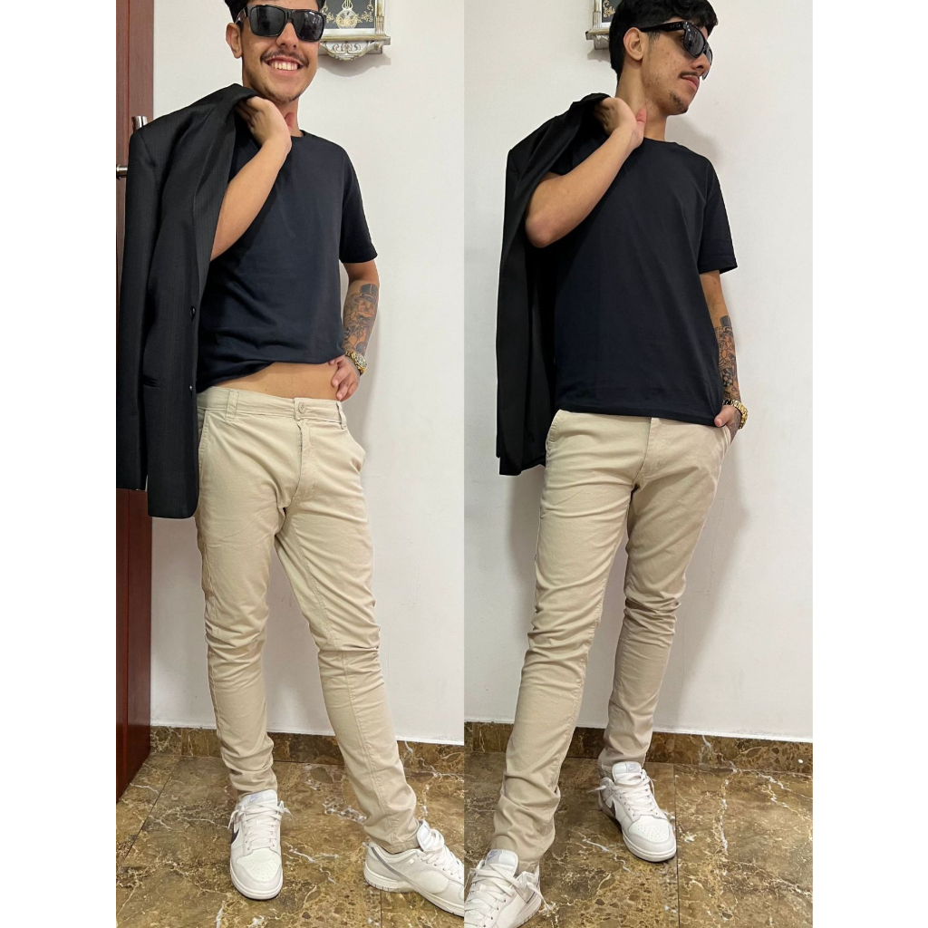 CALÇA DE SARJA MASCULINA SPORT FINO MODELO SLIM FIT BOLSO FACA COR AREIA ADULTO MARCA OGOCHI