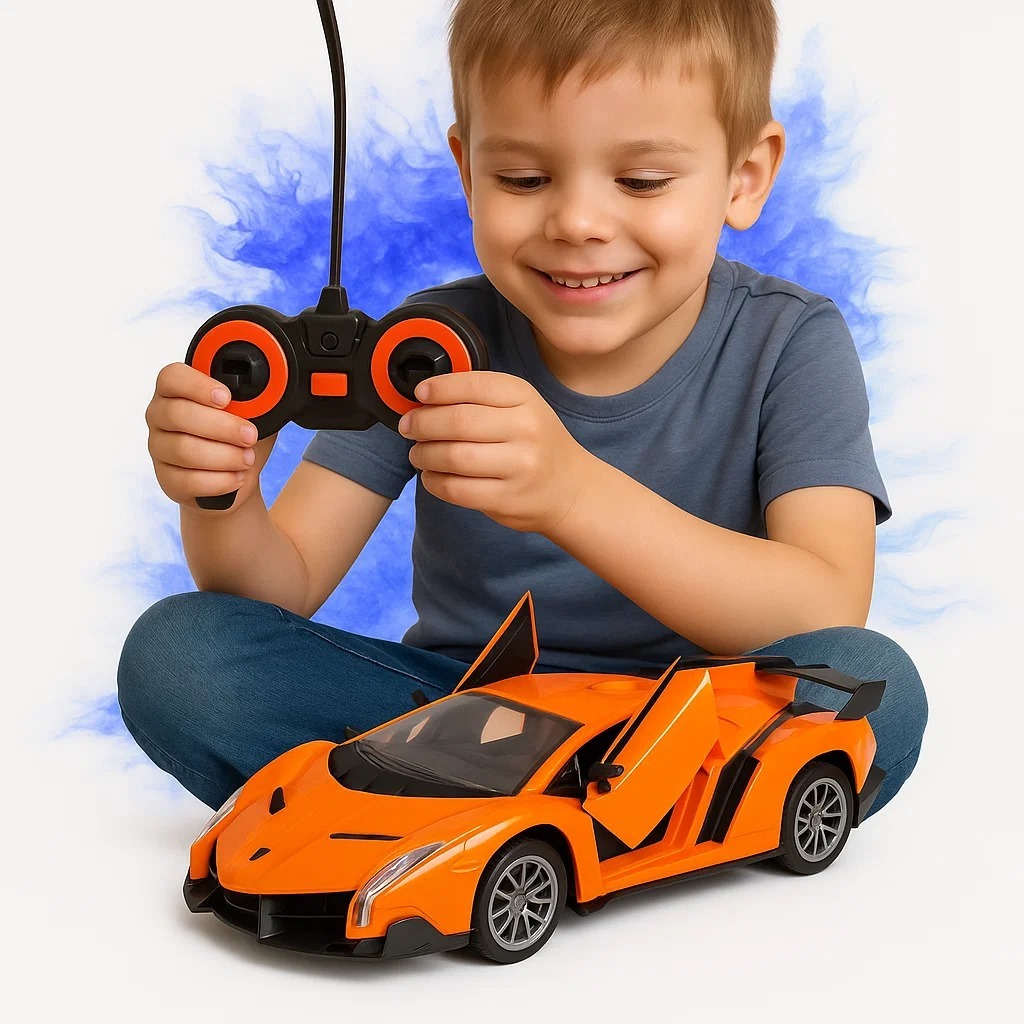 Carrinho Controle Remoto 7 Funções Conversível Acende Faróis Super GT - Art Brink Laranja