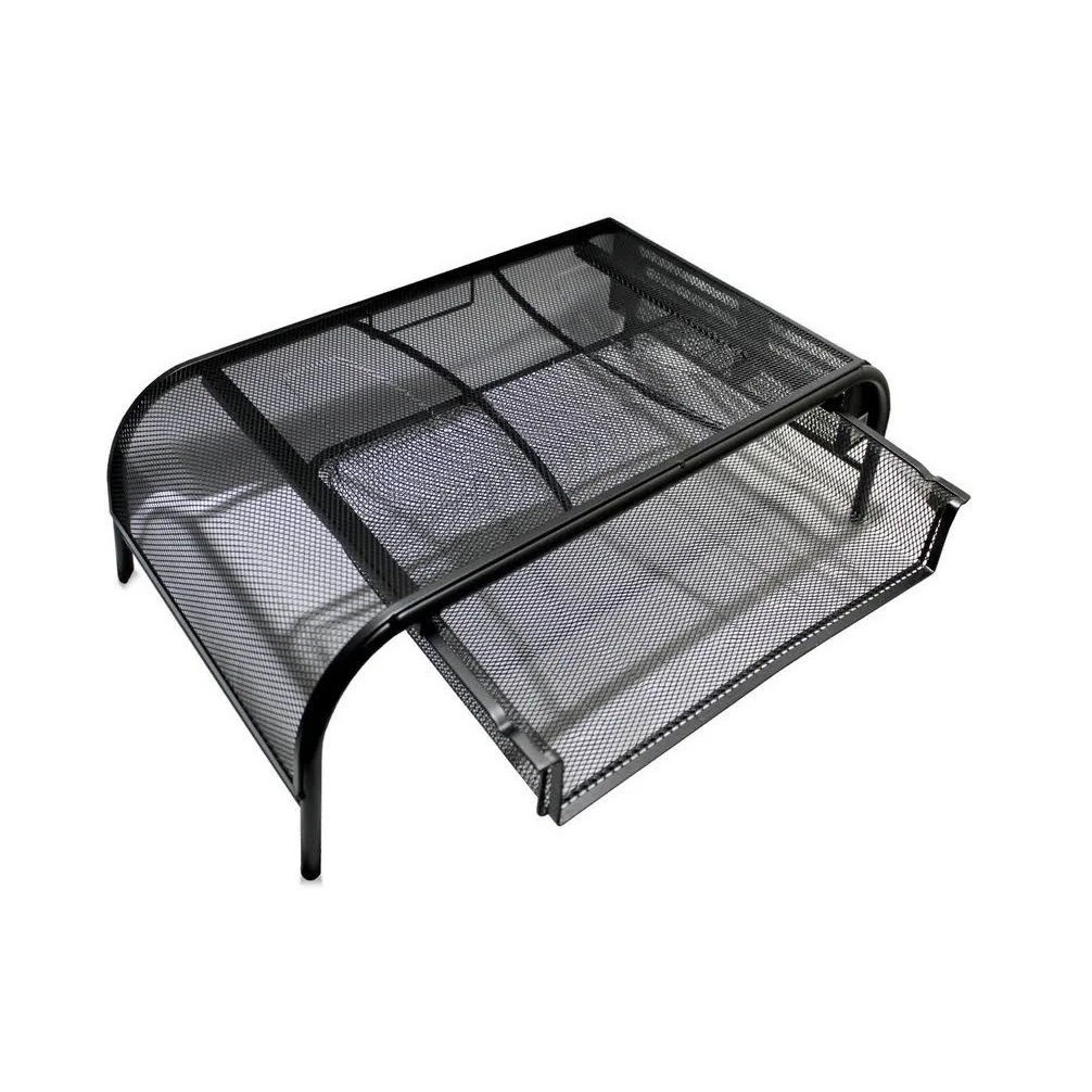 Suporte Para Monitor Notebook Com Organizador De Mesa Aramado Preto