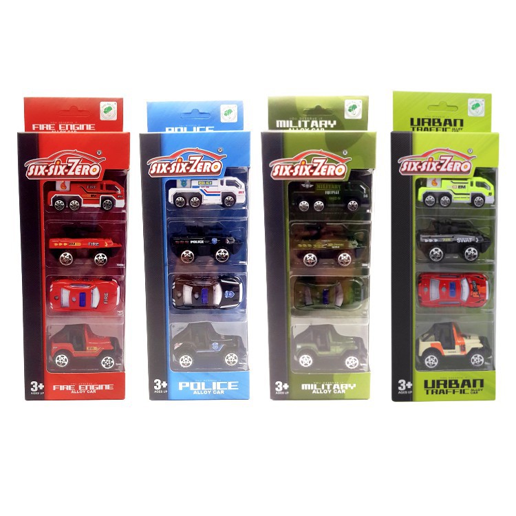 kit Carrinho de Ferro Mini Série City 4 Modelos Bombeiro / Urbano / Militar / Policia