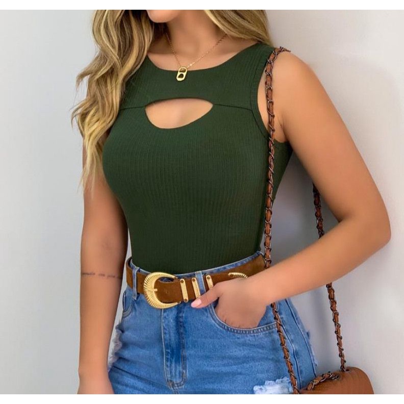 Blusa Gola Alta Canelada Regata Feminina Com Bojo Tendência Super Moda!! 0018