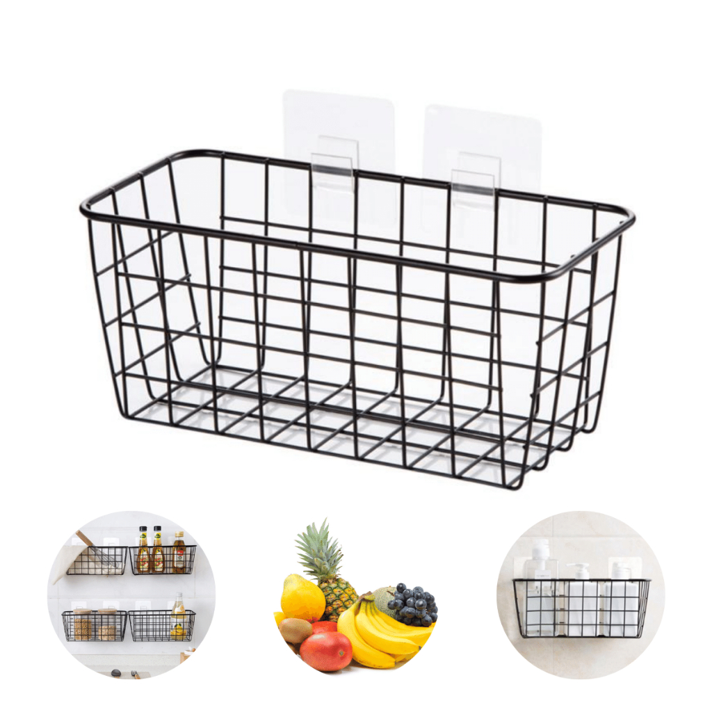 Cesto Organizador Aramado Adesivo Parede Metal Multiuso Prateleira Cozinha Banheiro Lavanderia