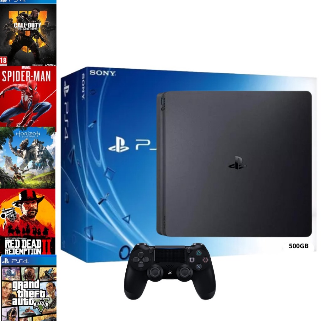 Ps4 Video Game Slim Playstation 4 + Controles + 1 Jogo - Garantia - 500GB ou 1TB