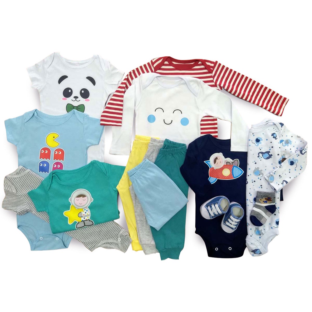 Body Bebê Mijão Liso Estampado Kit 14 Peças Roupa Bebê Meia Tênis Infantil saída de maternidade Menino