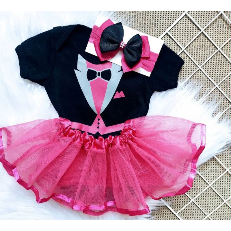 Kit Temático Mesversario Laço + Body + Saia de Tule Body Bebê Roupa Infantil