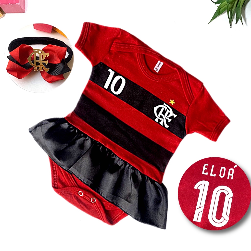 Kit Flamengo Bebê Nome Personalizado: Body Menina + Faixinha do Mengão Mesversário Fotos Tema Time de Futebol