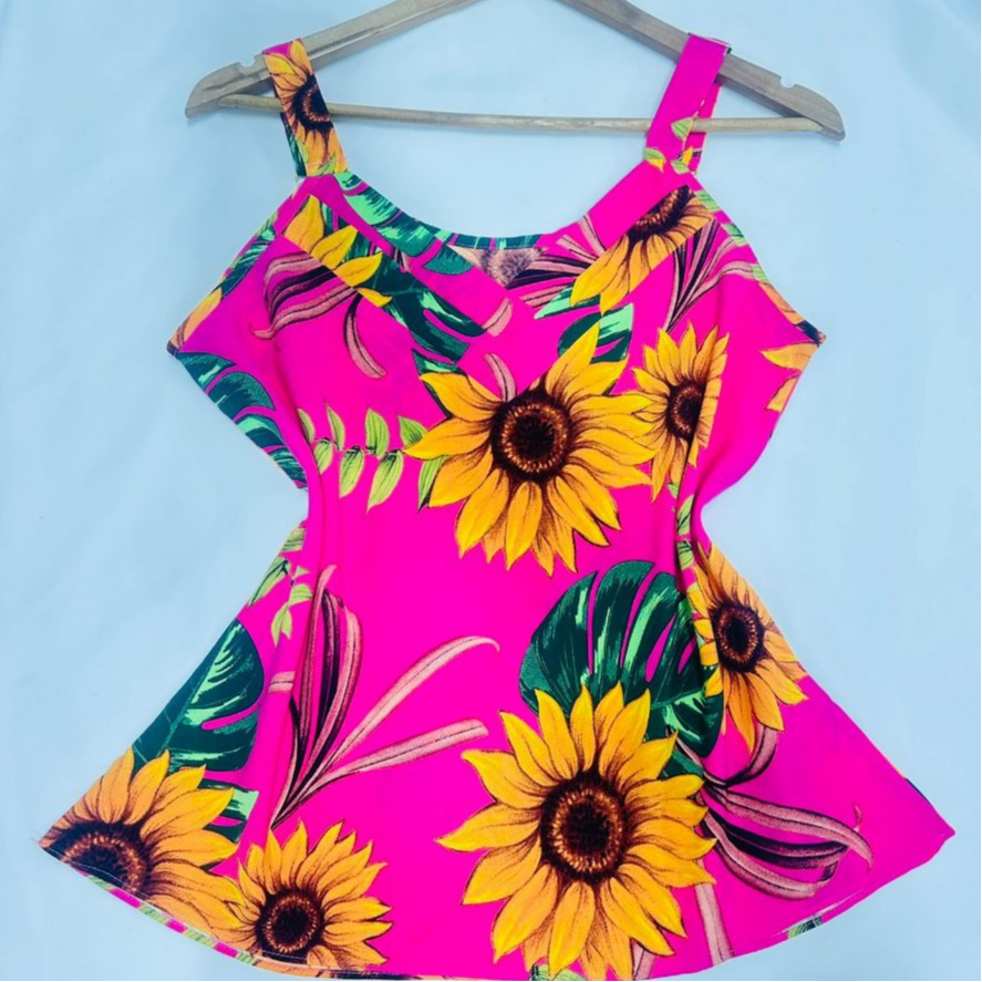 Blusa Ciganinha Regata Alça Larga Estampada Crepinho