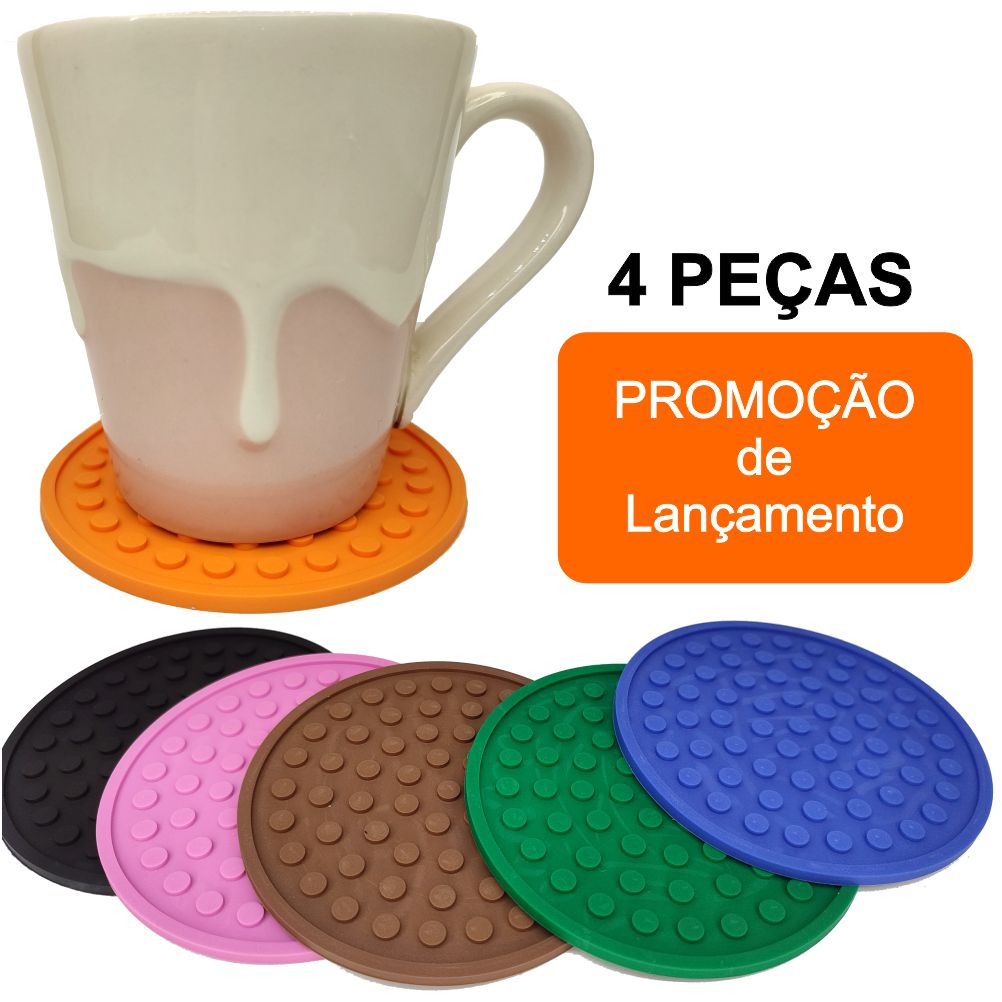 KIT 4 Porta Copo Emborrachado 10cm Redondo Diversas Cores Bolacha de Chopp Cerveja Café Chá Descanso de copo Alto Relevo