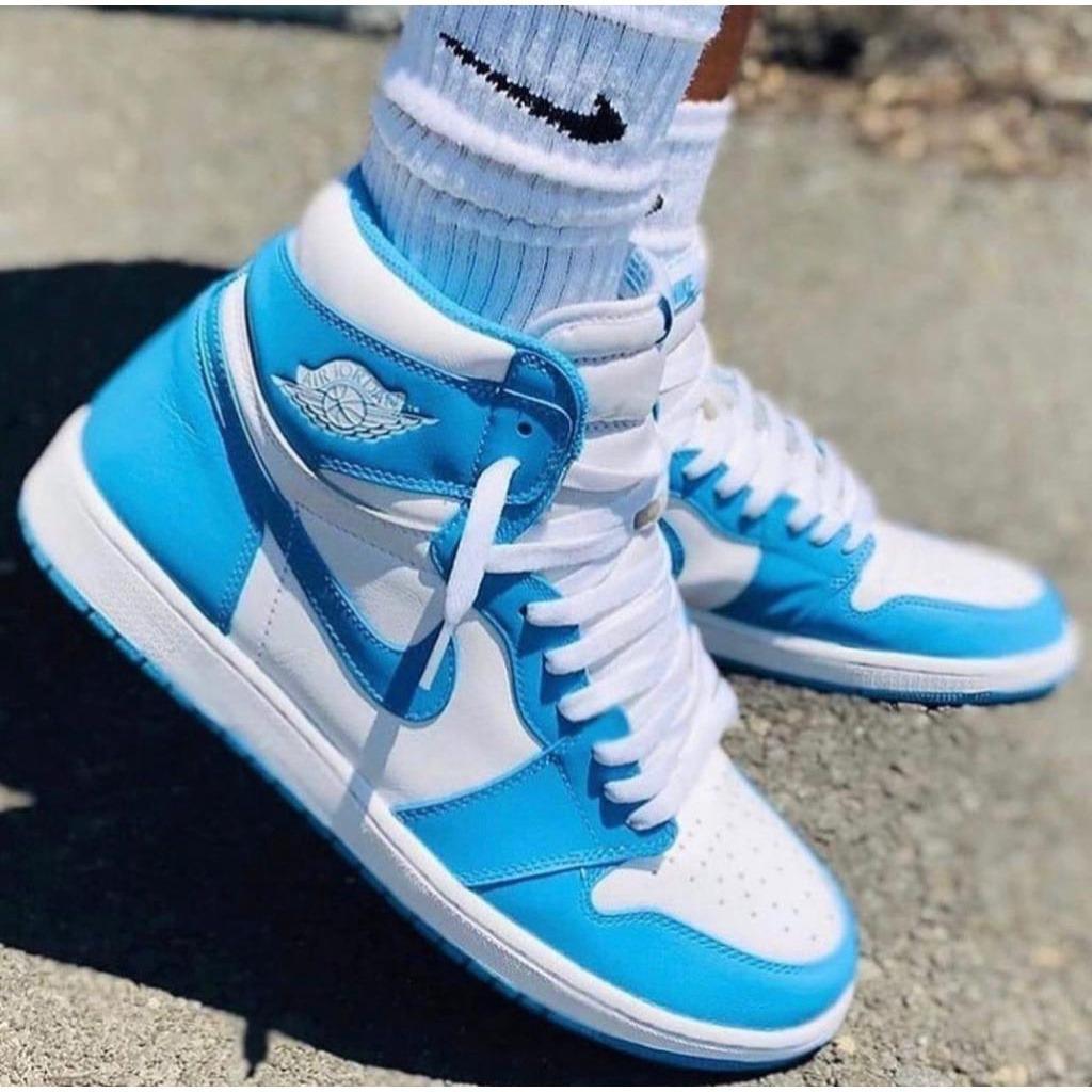 Tênis Air Jordan Chicago azul bb Bota 1 Retro Cano Alto Feminino e Masculino super desconto