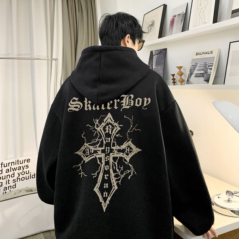 Blusa De Moletom Com Capuz Estilo Japonês Gótico Estampa De Cruz Moda Pulôver Masculino e Feminino Promoção Envio Rápido