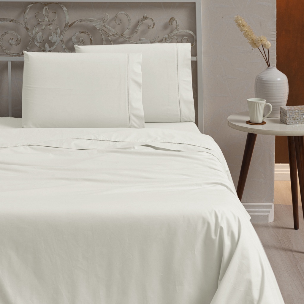 Jogo de Lençol Tamanho Casal 03 peças com elástico fronhas com ponto palito micro percal 400 fios