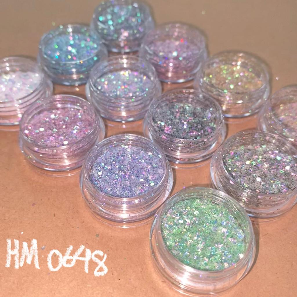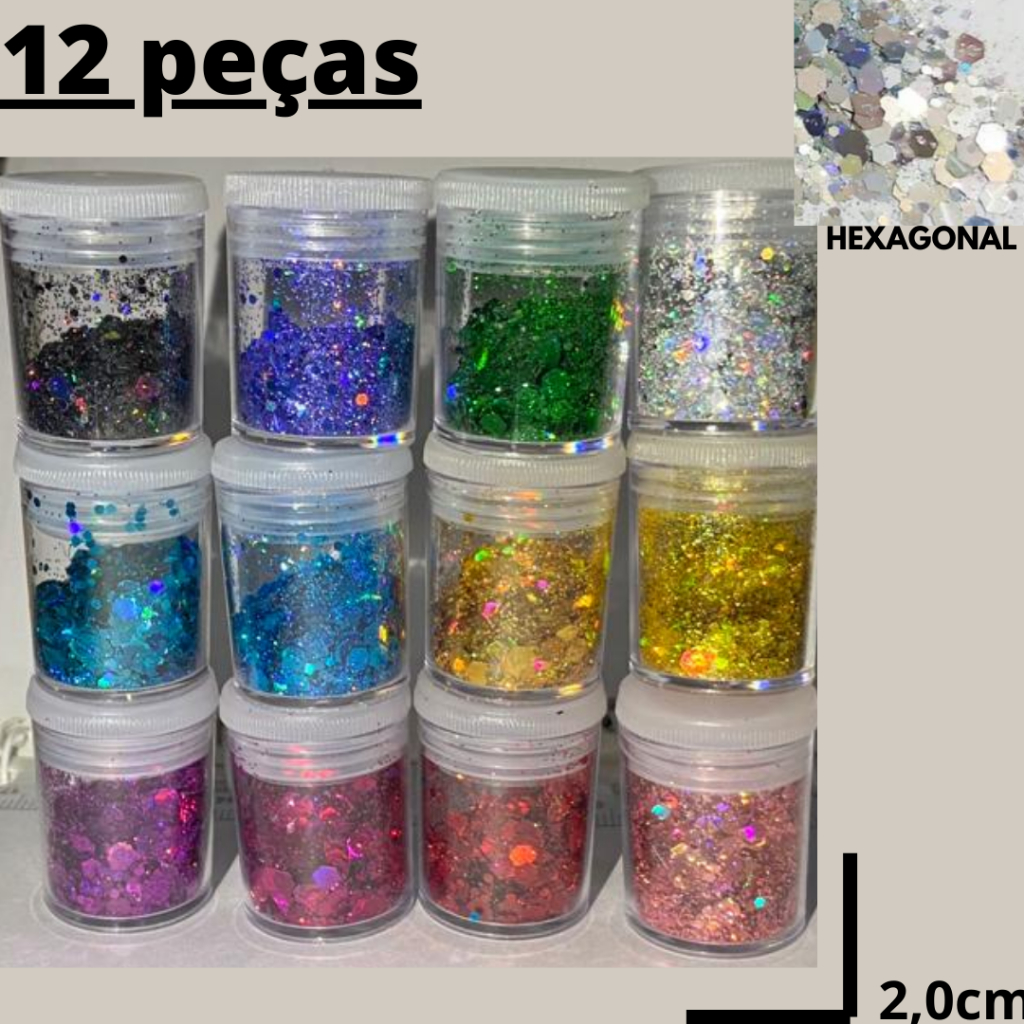 Kit 12 Glitters flocados hexagonais holografico para decoração artesanato resina epóxi nail art unhas carnaval maquiagem glitter flocado hexagonal brilho shine gliter lantejoula