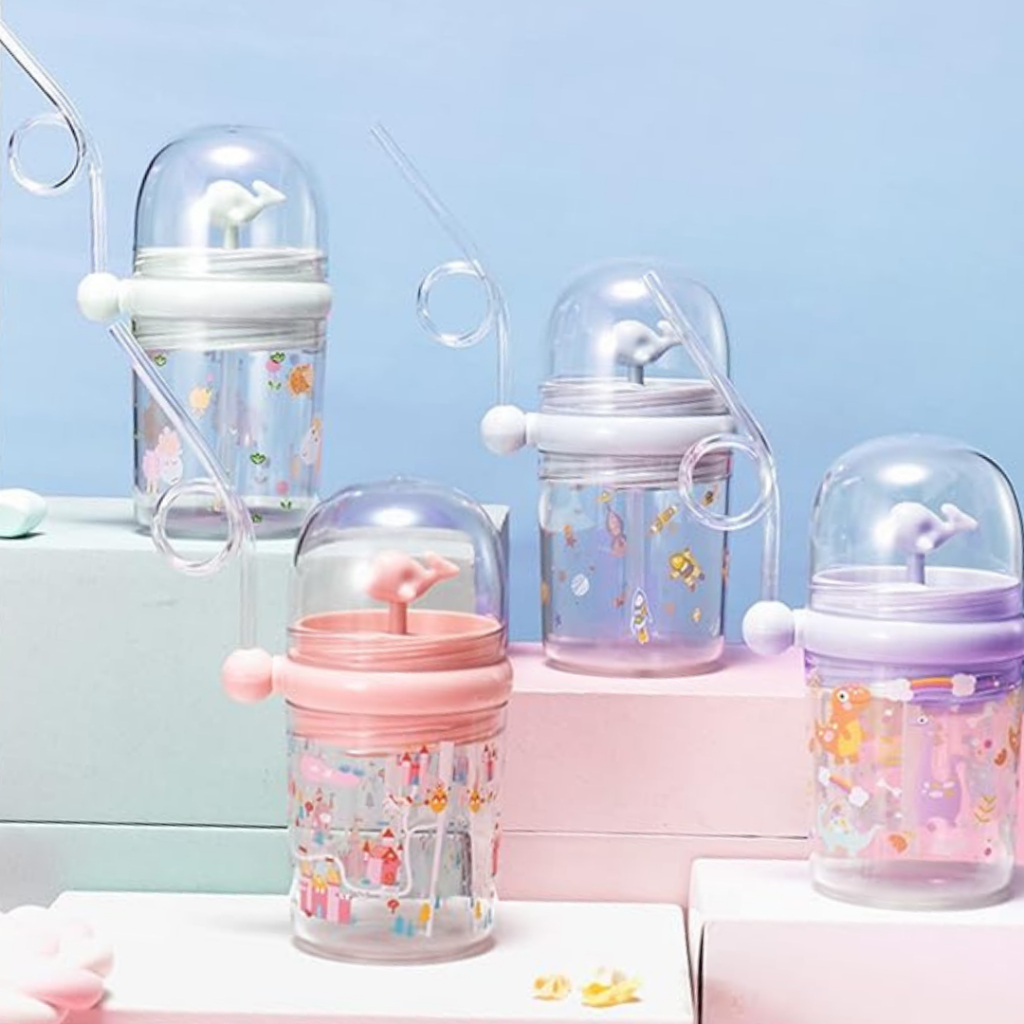 Garrafa Copo Infantil Plástico com Canudo de Silicone Divertido 250ml - TOP
