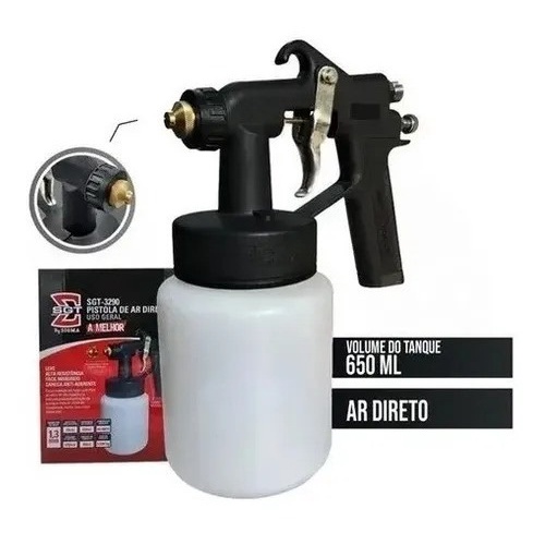 Pistola De Pintura Ar Direto 650Ml Profissional + Bico 1.3 + Bico Leque Modelo Arprex Sgt 3290 Sigma Pistola Pneumática com Copo de Plástico Adaptável para Compressores Portáteis