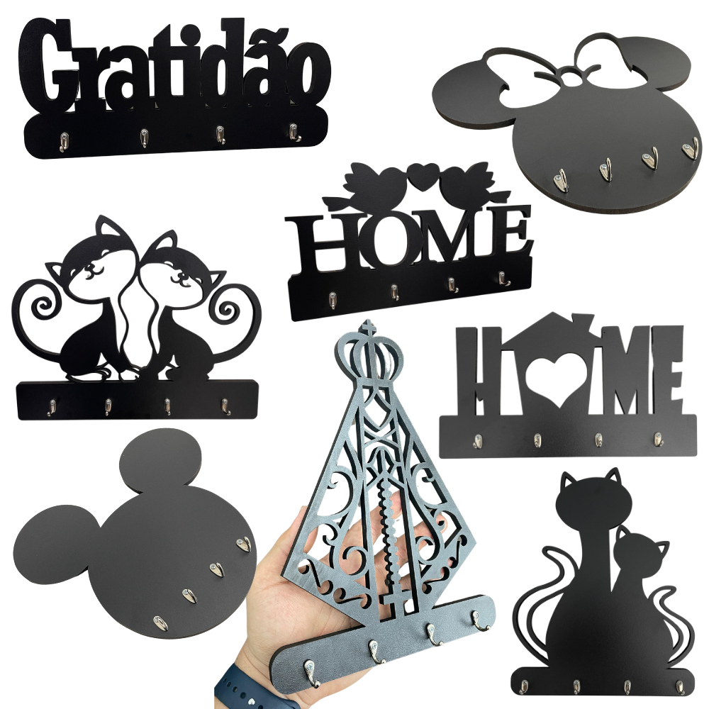 Porta Chaves de Parede MDF 6mm Preto Gratidão Nossa Senhora Home Mickey Minie Gatinho
