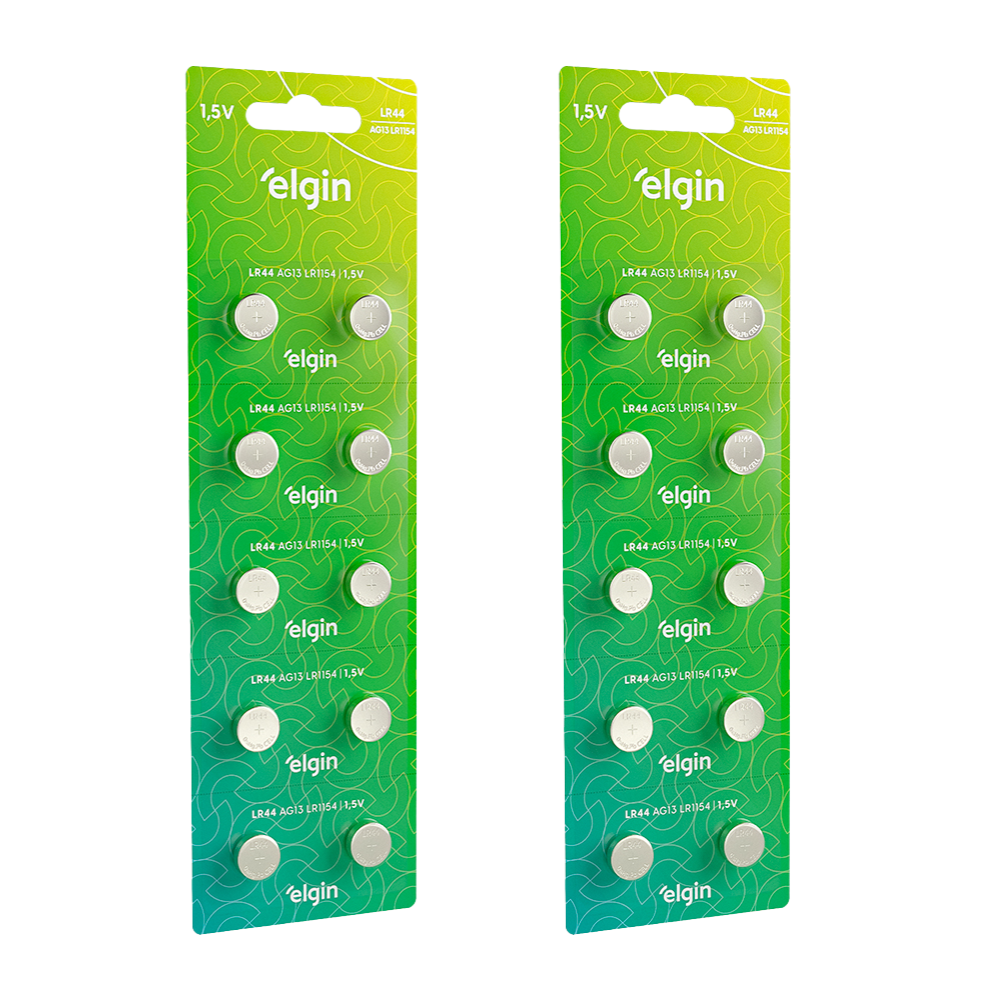 20 Pilhas Baterias Alcalina Elgin LR44 AG13 LR1154 2 Blister/Cartela com 10 Unidades Original
