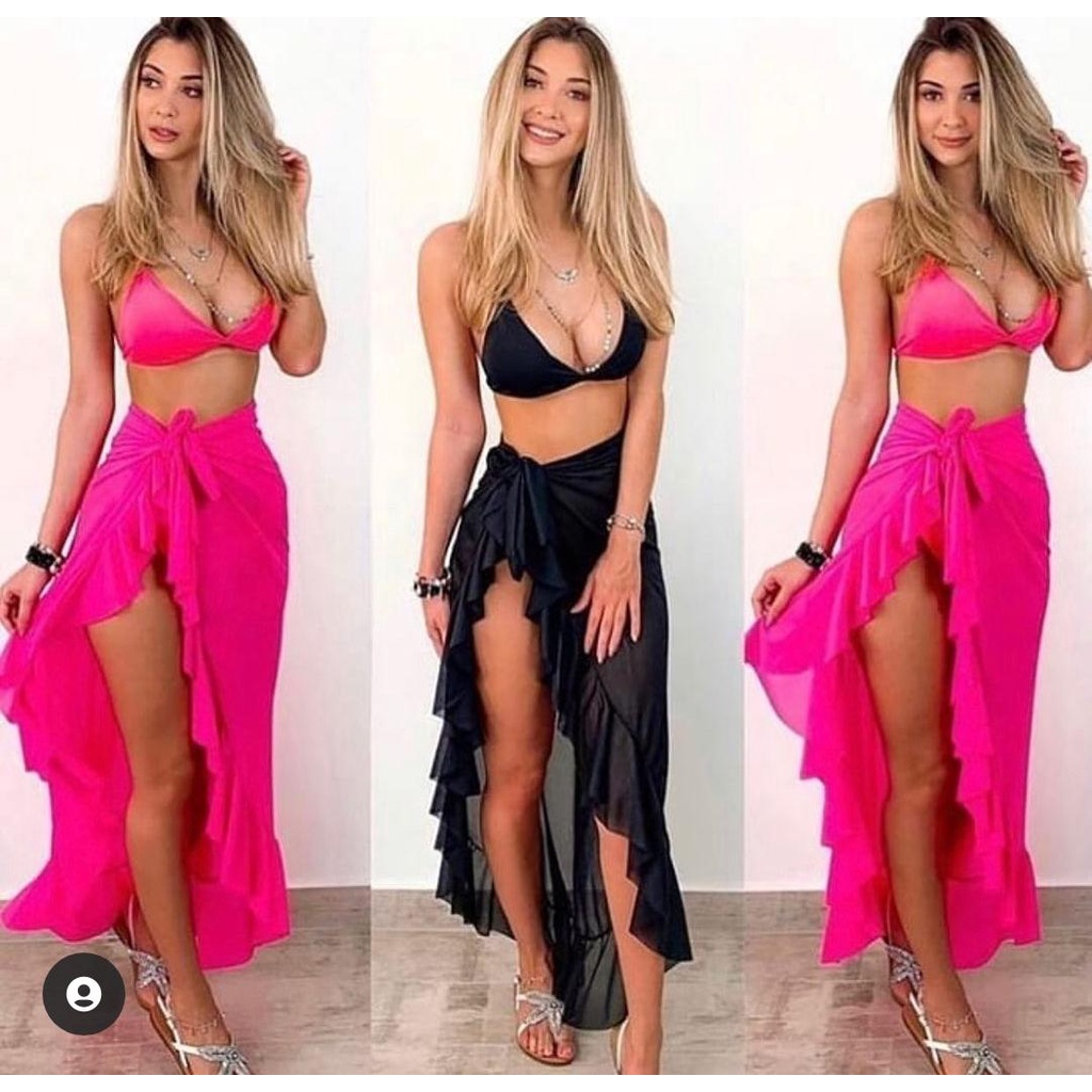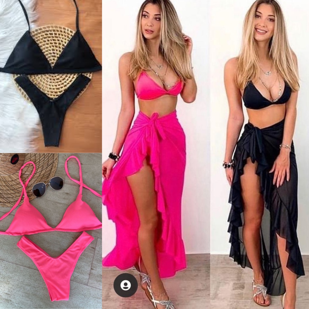 kIT Verão Biquini Asa Delta Com Bojo Mais Saída De Praia Varias Cores Pronta Entrga