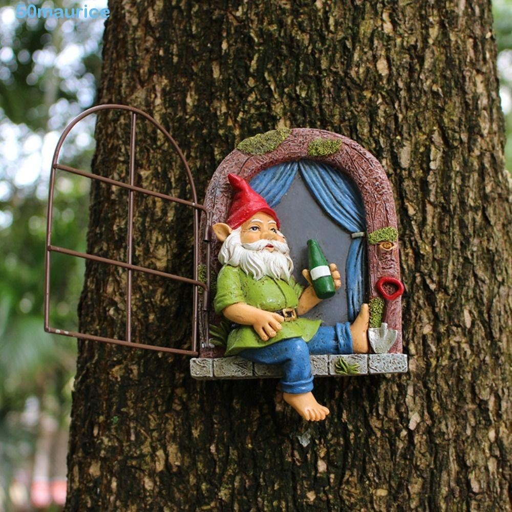 MAURICE Elf Tree Hugge Statues , Estátuas De Gnomo De Jardim Realistas À Prova D'água , Resina De Arte Funny Dwarf Hanging Garden