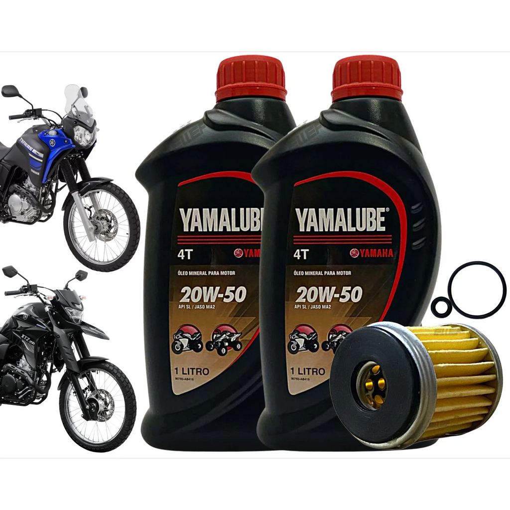 Kit Troca 2 Litros Óleo Yamalube 20w50 Mineral + Filtro de Óleo Dvsc Yamaha Xtz Crosser Fazer Factor 150 125i