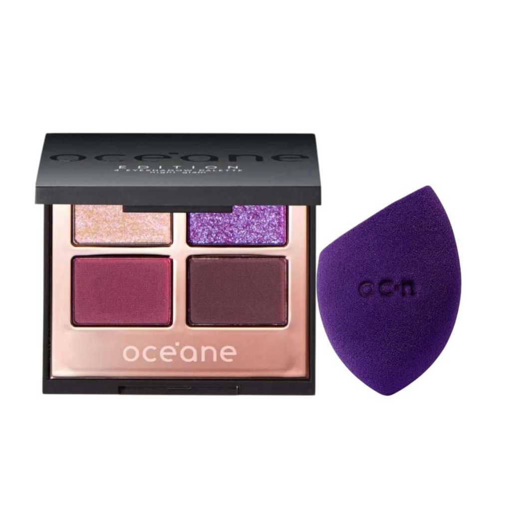 Kit Paleta de Sombras - 4 Eyeshadow Palette Night Glam Océane Edition 4,5g + Esponja Flat Blend Roxa Océane Purple