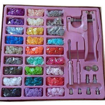 Kit Alicate de Pressão 3 em 1 Lanmax Rosa Aplicador de Botão colorido - Alicate + Botões Plástico e Metal + Ilhós