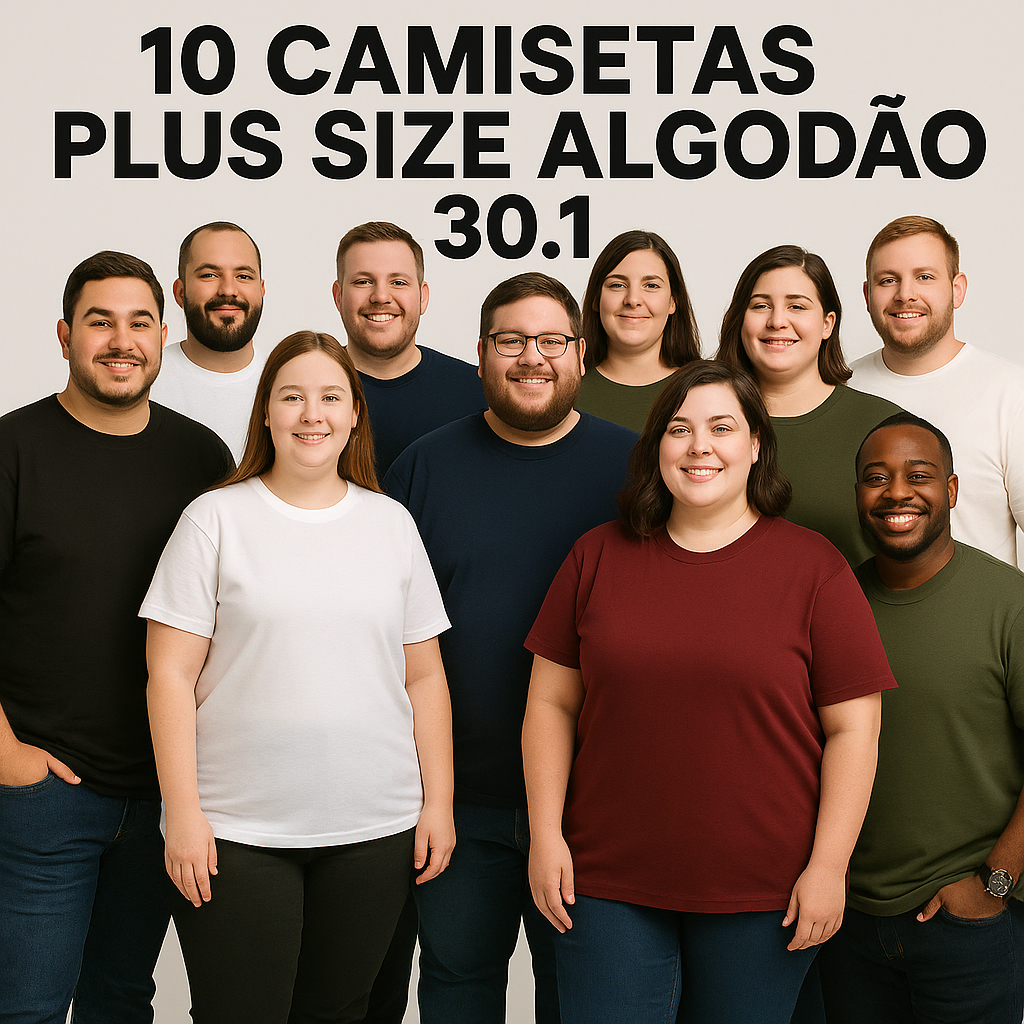 Kit 10 Camiseta Plus Size 100% Algodão Masculina Blusa Camisa Lisa Masculina G1 G2 G3 Promoção
