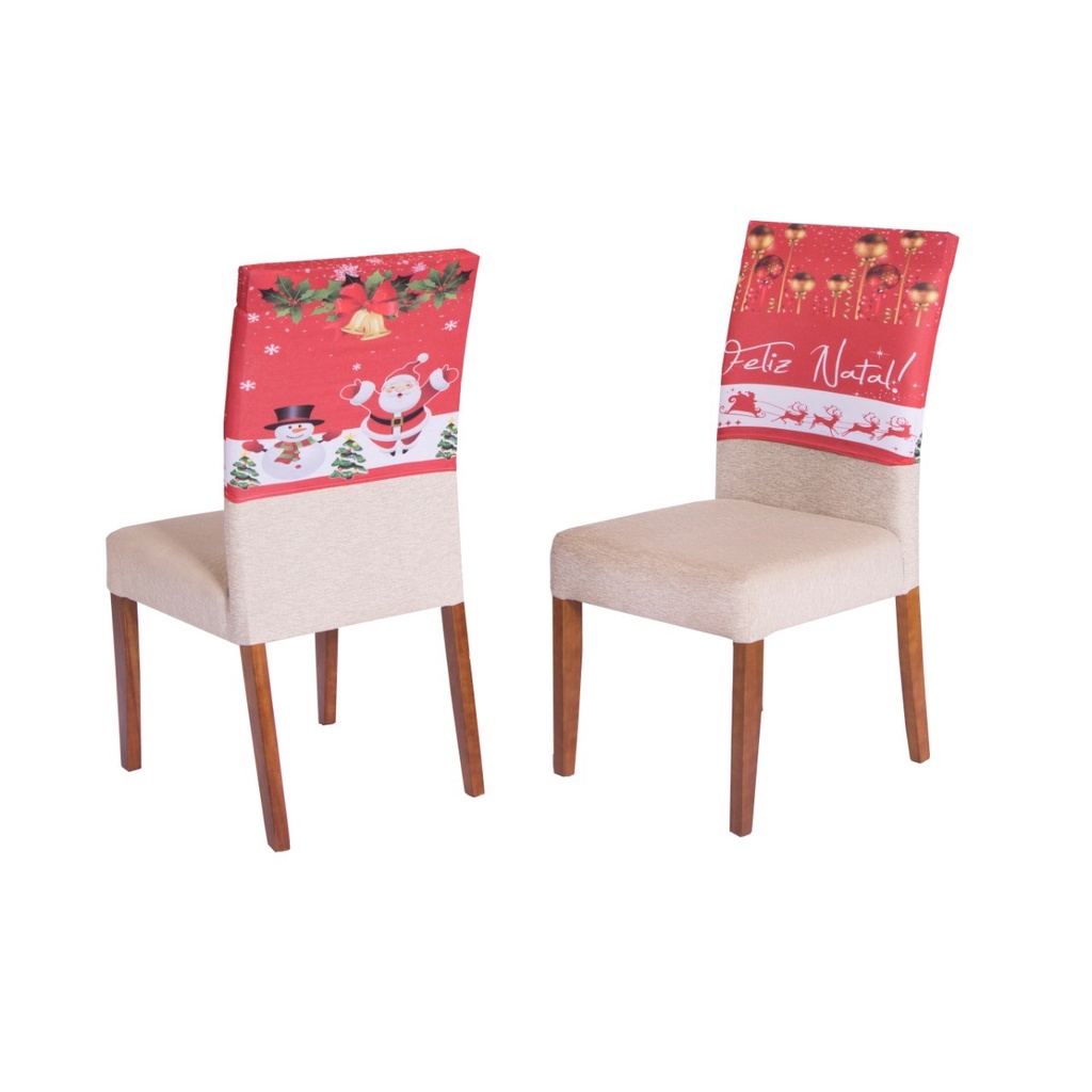 Capa de Cadeira Natal Kit com 4 peças Estampas Natalinas para as festas de final de ano